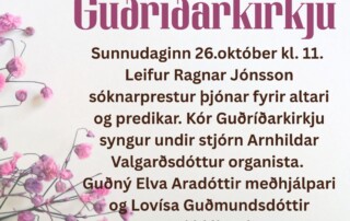 Verið velkomin í messu í Guðríðarkirkju sunnudaginn 26.október kl.11 Búningasunnudagaskóli á sama tíma í safnaðarheimilinu. Leifur Ragnar Jónsson sóknarprestur þjónar fyrir altari og predikar. Kór Guðríðarkirkju syngur undir stjórn Arnhildar Valgarðsdóttur organista. Guðný Elva Aradóttir [...]