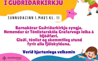 Verið hjartanlega velkomin í Guðríðarkirkju á æskulýðsdegi þjóðkirkjunnar. Sunnudaginn 1.mars kl. 11