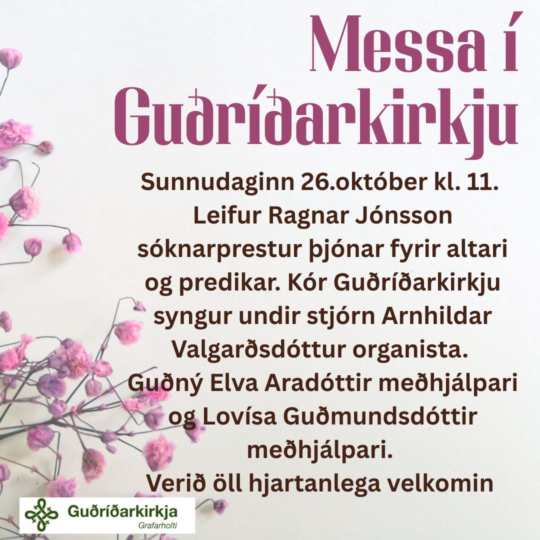 Verið velkomin í messu í Guðríðarkirkju sunnudaginn 26.október kl.11