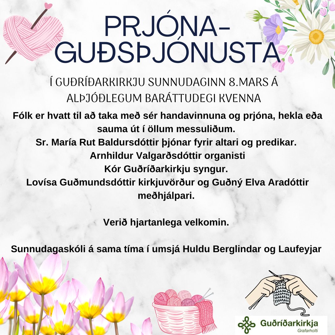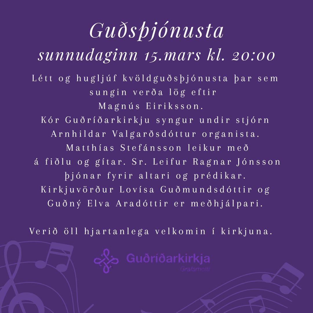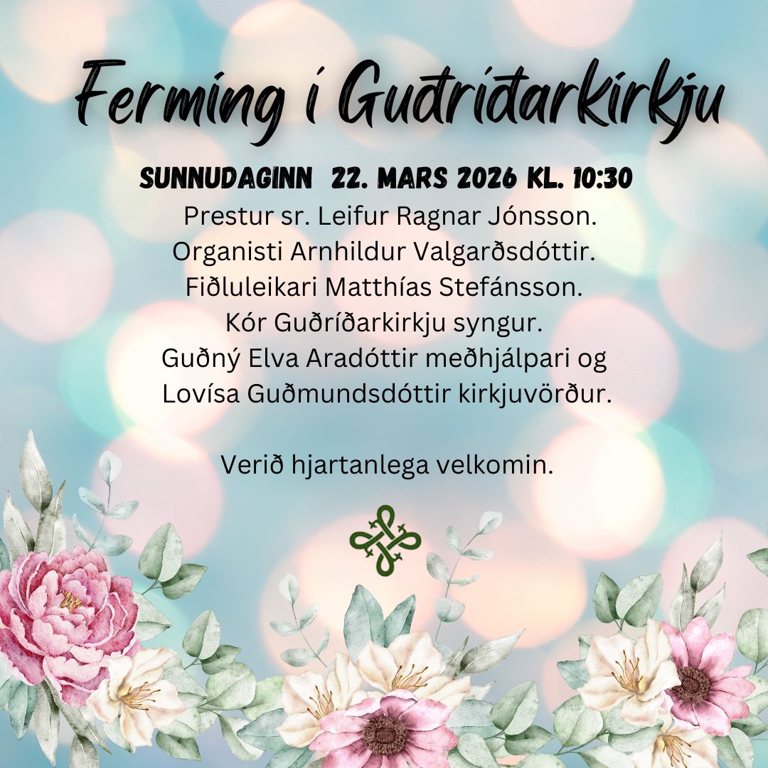 Helgihald um bænadaga og páska í Guðríðarkirkju verður sem hér segir : Skírdagur : Fermingarmessur kl. 10:30 og 12:00 Sr. Leifur Ragnar Jónsson þjónar fyrir altari og prédikar. Arnhildur Valgarðsdóttir organisti. Kór Guðríðarkirkju syngur. Kirkjuvörður: [...]