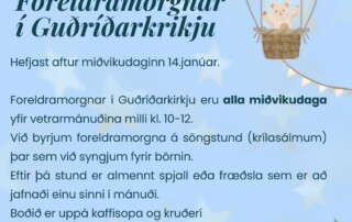 Eldriborgarastarf í GuðríðarkirkjuMiðvikudaginn 14. janúar kl. 12:10 Við bjóðum ykkur hjartanlega velkomin í notalegt eldriborgarastarf þar sem við komum saman í upphafi nýs árs til að eiga góða stund saman. Dagskráin hefst á helgistund með [...]