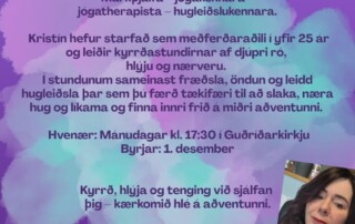 Umsögn um Kristínu Snorradóttur Kristín Snorradóttir leiðir kyrrðastundir aðventunnar af djúpri ró og nærveru. Hún er markþjálfi, jógakennari, jógatherapisti og hugleiðslukennari, með yfir 25 ára reynslu sem meðferðaraðili. Í starfi sínu sameinar hún þekkingu á [...]